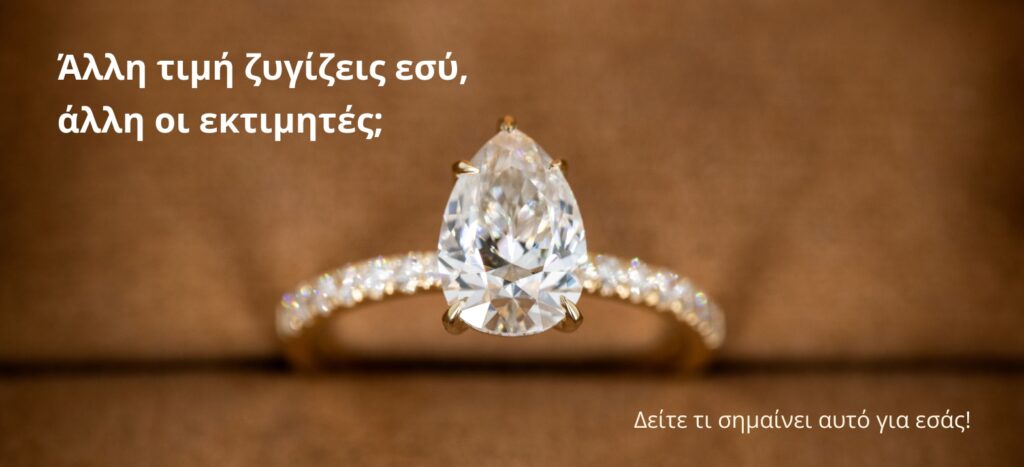 Φέρνεις ένα χρυσό δαχτυλίδι με μεγάλη, λαμπερή πέτρα. Το έχεις ζυγίσει στο σπίτι: 8 γραμμάρια. Μπαίνεις για εκτίμηση και ακούς...